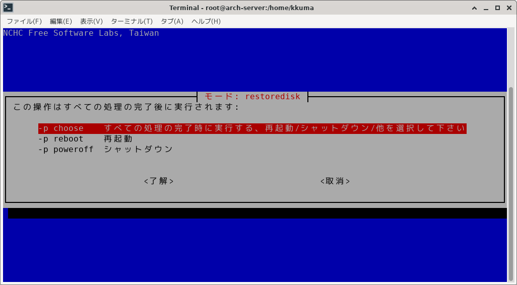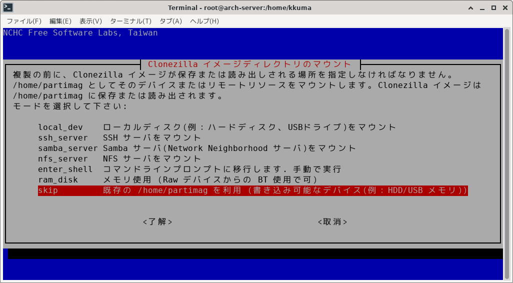 選択する。そうする事で/home/partimag下にあるファイル(img等)を