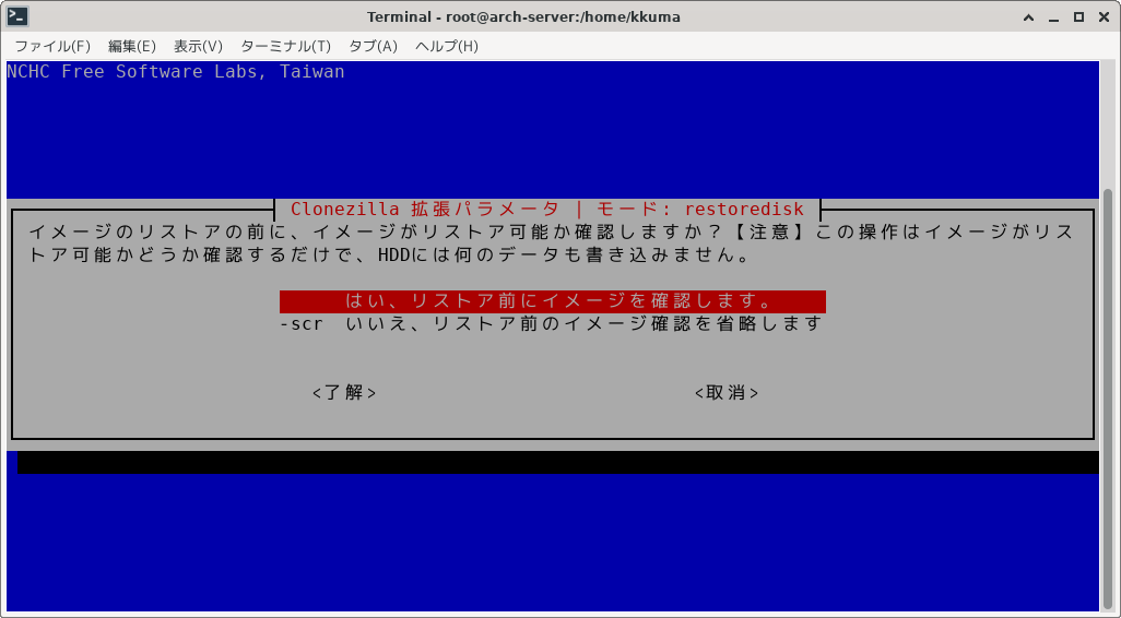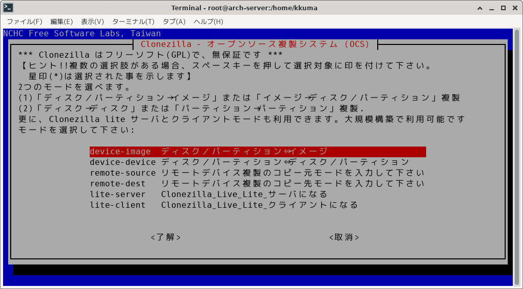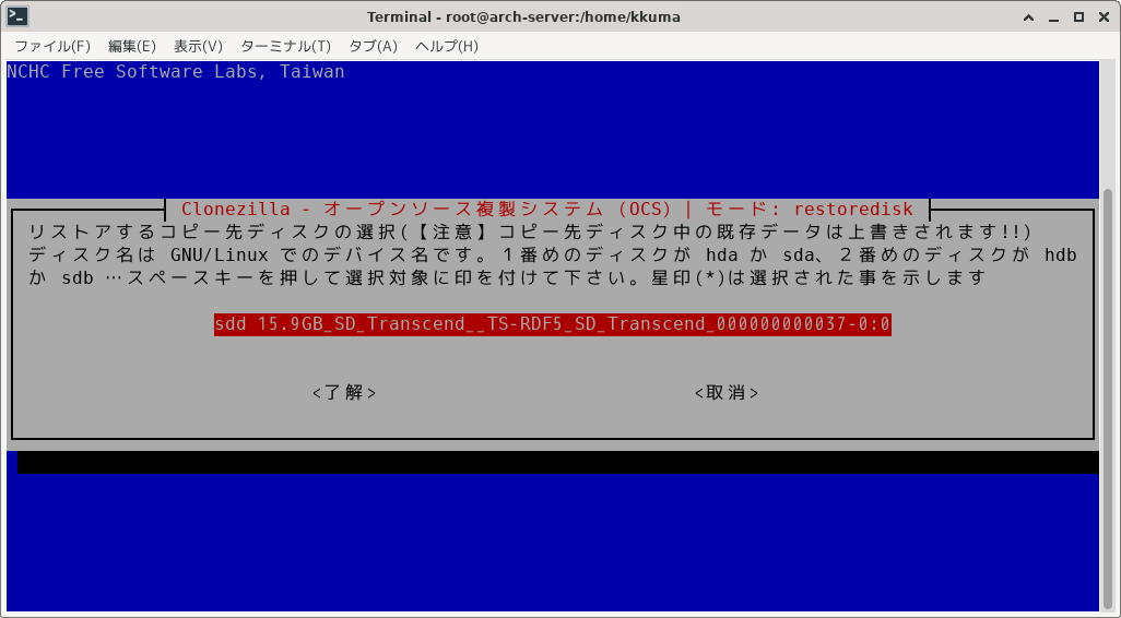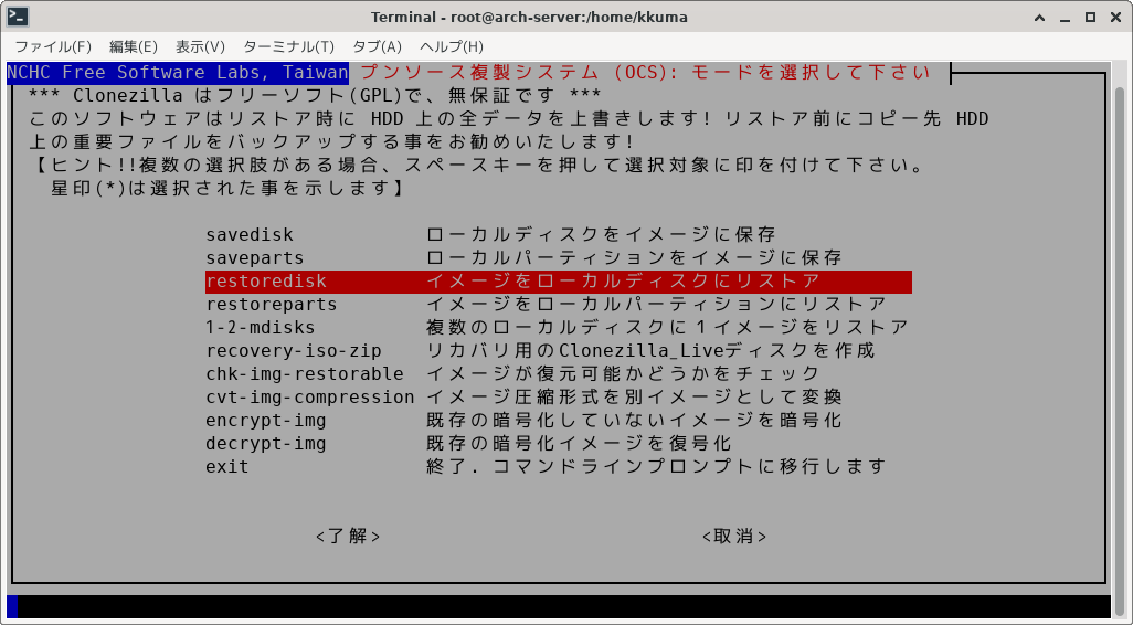 clonezillaで作成したimgファイルのレストアに絞って説明します。