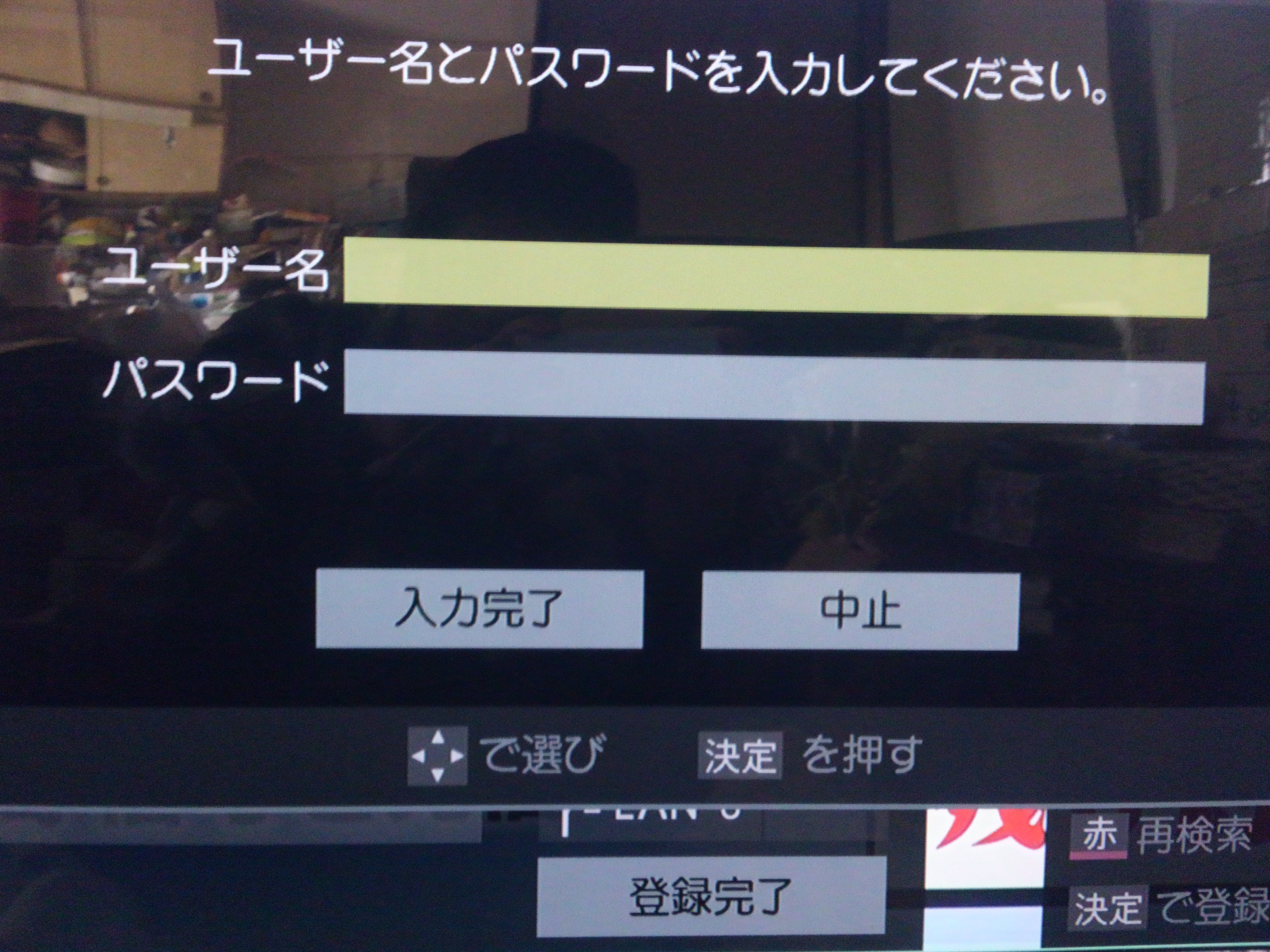 ユーザーとパスワードを入力して「入力完了」を押す