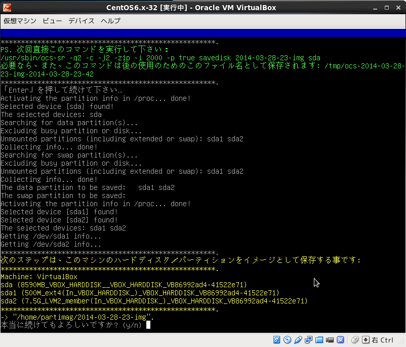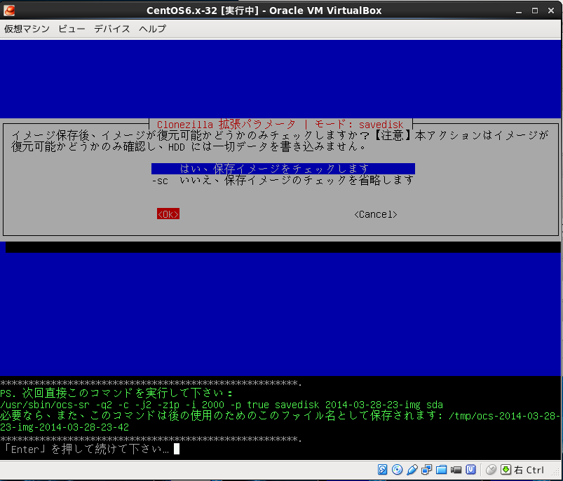 (disk to imageの作成)無事に終了したら物理ディスクに書き戻したいPC上でclonezillaでブートして