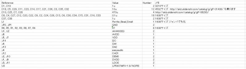 一応肝心の部品表を貼っておきます。自分の基板は有り合わせで作っているので合致していない部分が多数(^^;